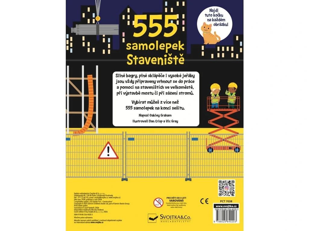 - Doplňuj podle vlastní fantazie nepřeberné množství samolepek do nápaditých a rušných scenérií s nejrůznějšími typy stavenišť a poznej spoustu stavebních strojů.