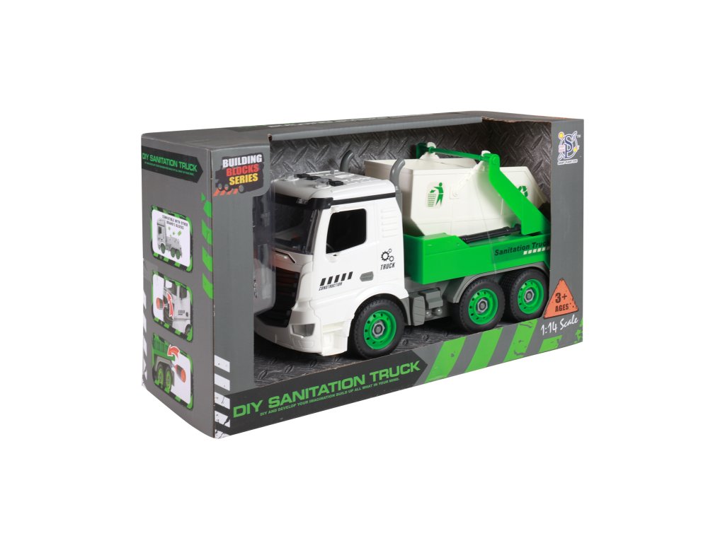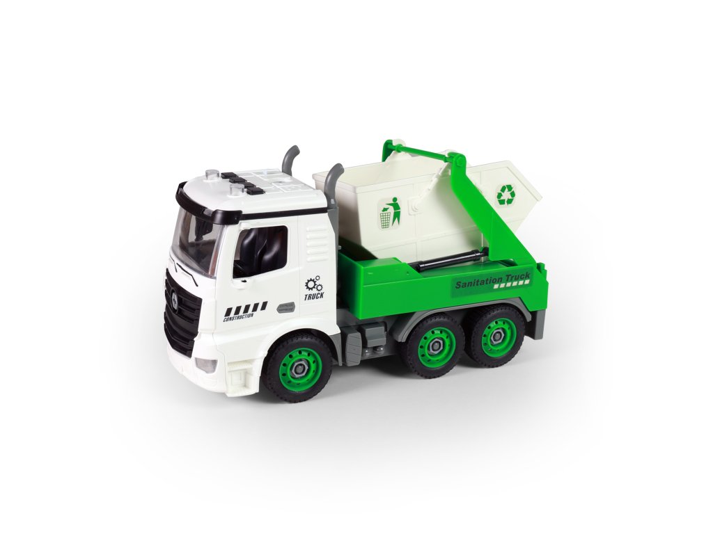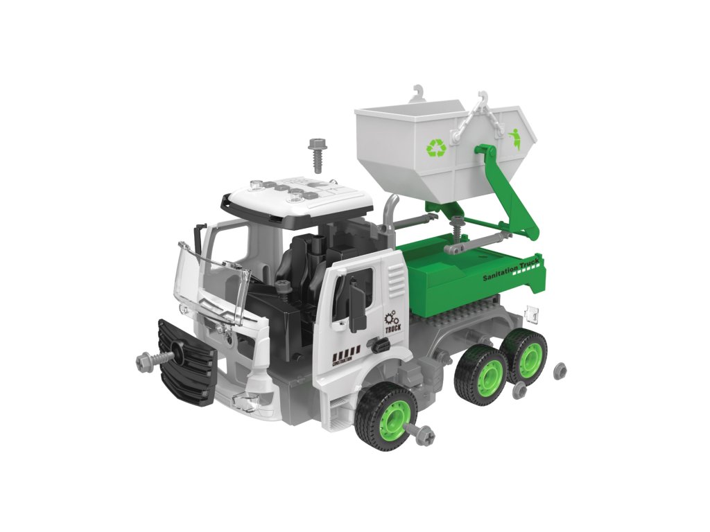 Šroubovací auto kontejner, které se dá pomocí přiloženého dětského šroubováku snadno rozložit a zase složit.