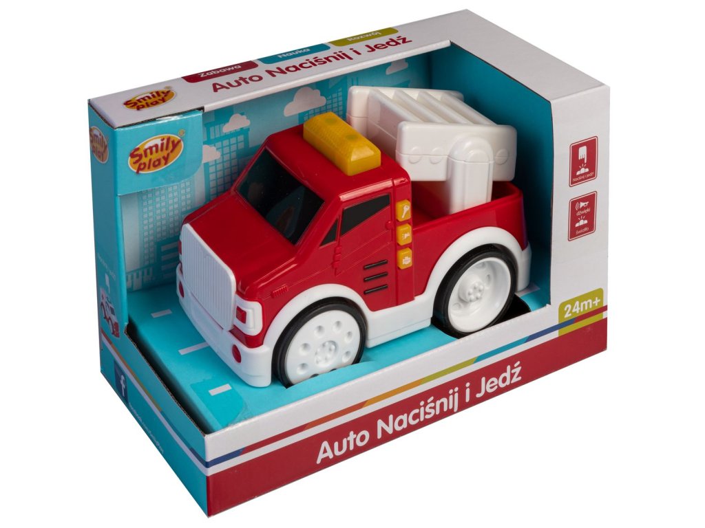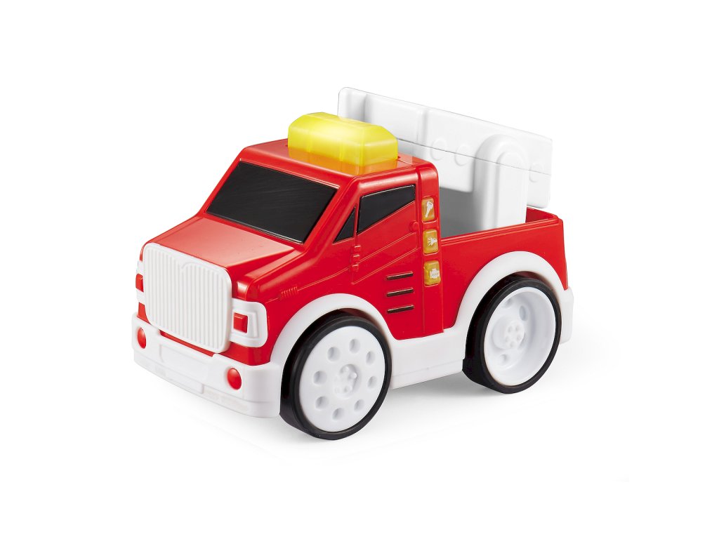 Hasiče lze uvést do pohybu stisknutím tlačítka na střeše. Aktivizující hračka, která dítě povzbuzuje ke hře. Má 3 funkční tlačítka. Každé tlačítko vydává jiný realistický zvuk: zvuk motoru a dvě sirény záchranného vozidla na silnici.