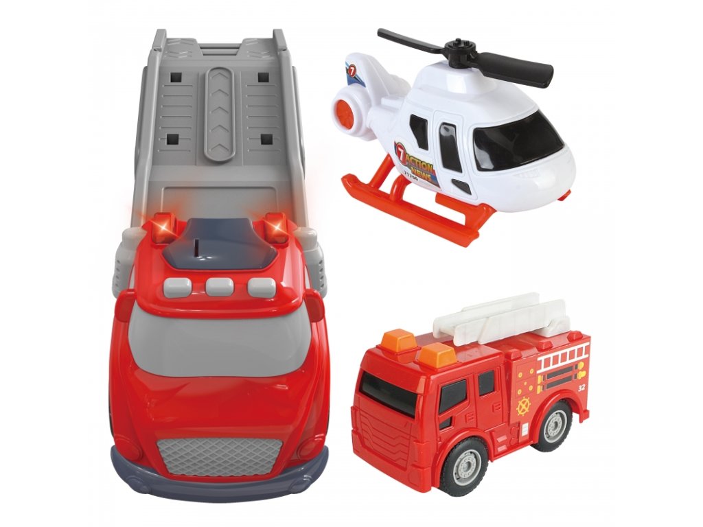 - Sada obsahuje: odtahovku , vrtulník a hasičský vůz