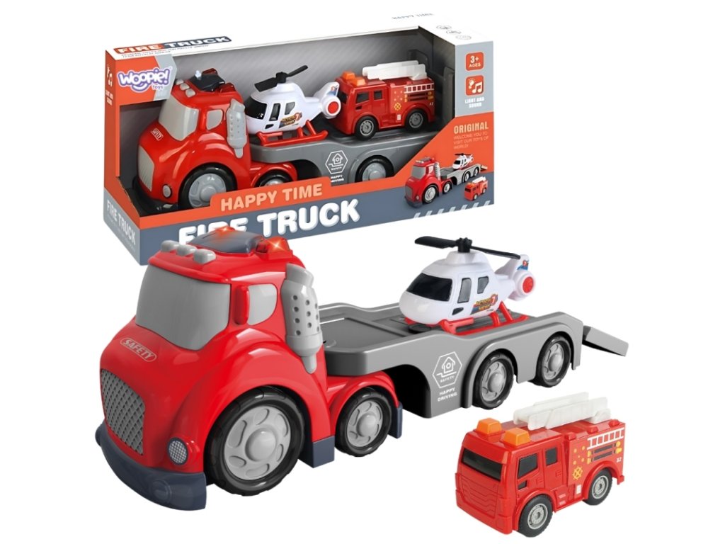 Hasičský vůz ze série CITY TRUCK umožní vašemu dítěti hrát si na hasiče. Sada je vyrobena z vysoce kvalitních materiálů a skládá se z velkého červeného nákladního auta s odtahovkou, vrtulníku a malého hasičského vozu. Světelné a zvukové efekty učiní zábavu ještě realističtější a napínavější. Tato sada je ideální pro kreativní hraní s hasiči nebo záchranáři.