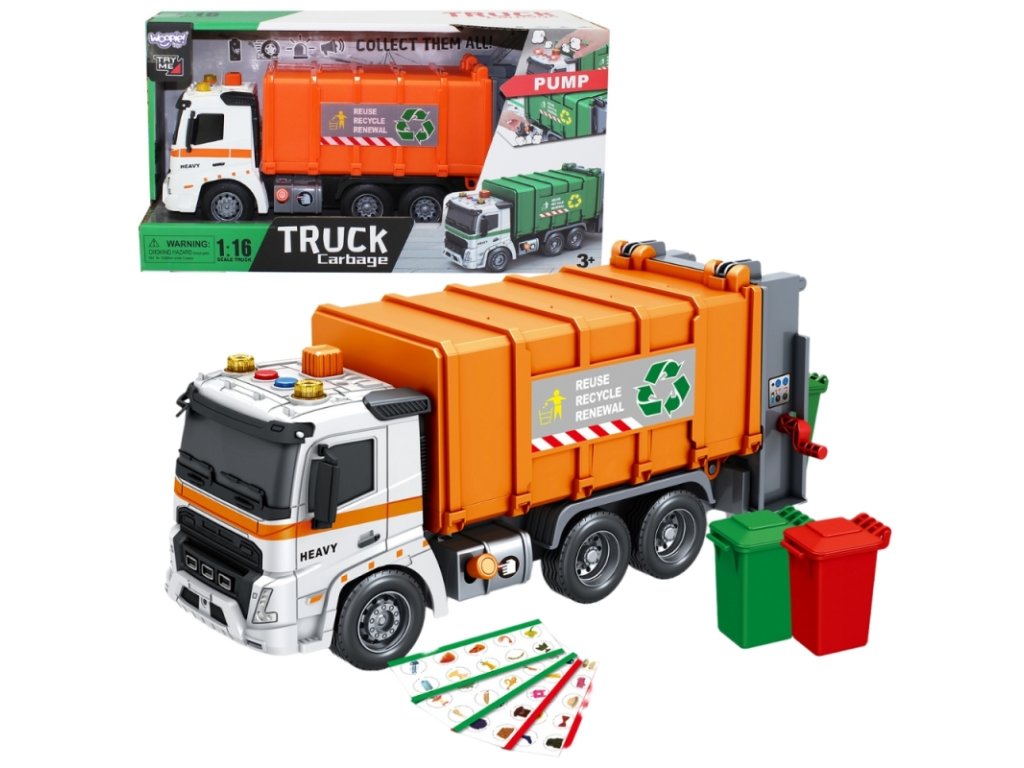 Hračka na odpadky je dokonale zreprodukované komunální vozidlo, které jistě potěší každého malého fanouška městských vozidel. Vyrobeno z odolných materiálů, s výrazným barevným schématem v odstínech oranžové a bílé, stane se oblíbeným vozidlem ve sbírce hraček vašeho dítěte. Obsahuje řadu pohyblivých prvků a interaktivních funkcí, díky nimž je hra nejen zábavná, ale i vzdělávací.