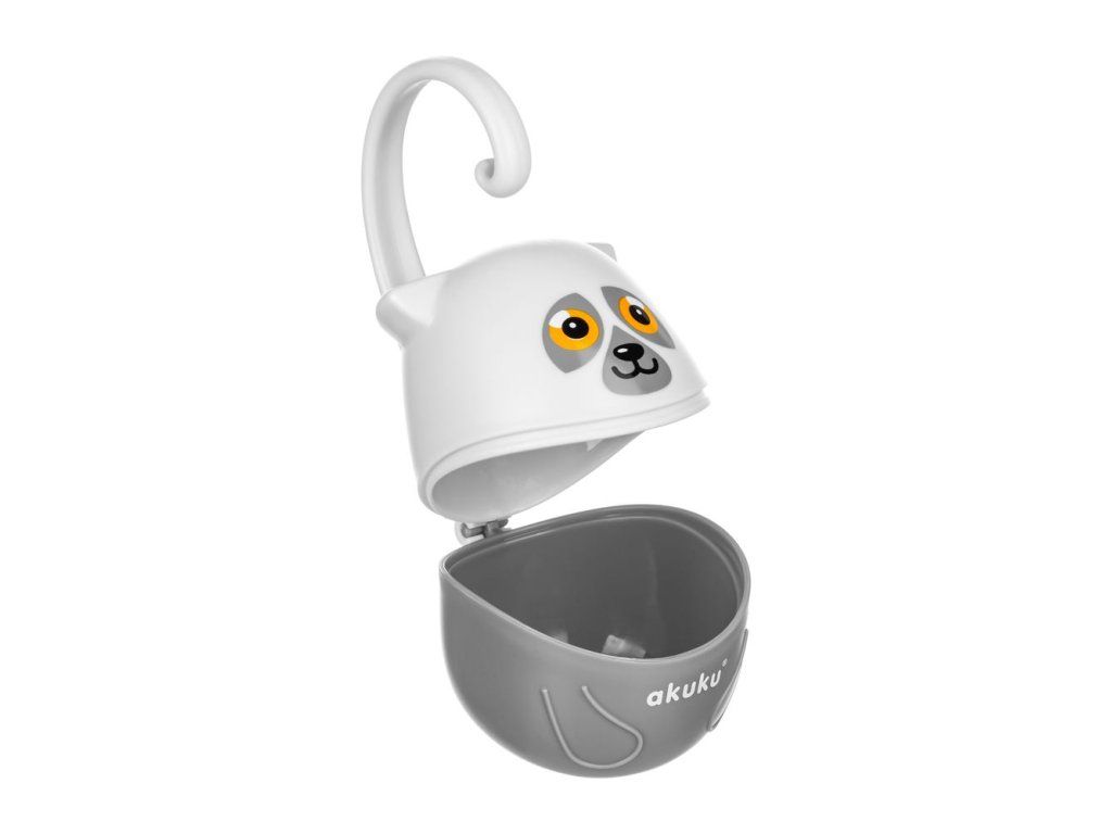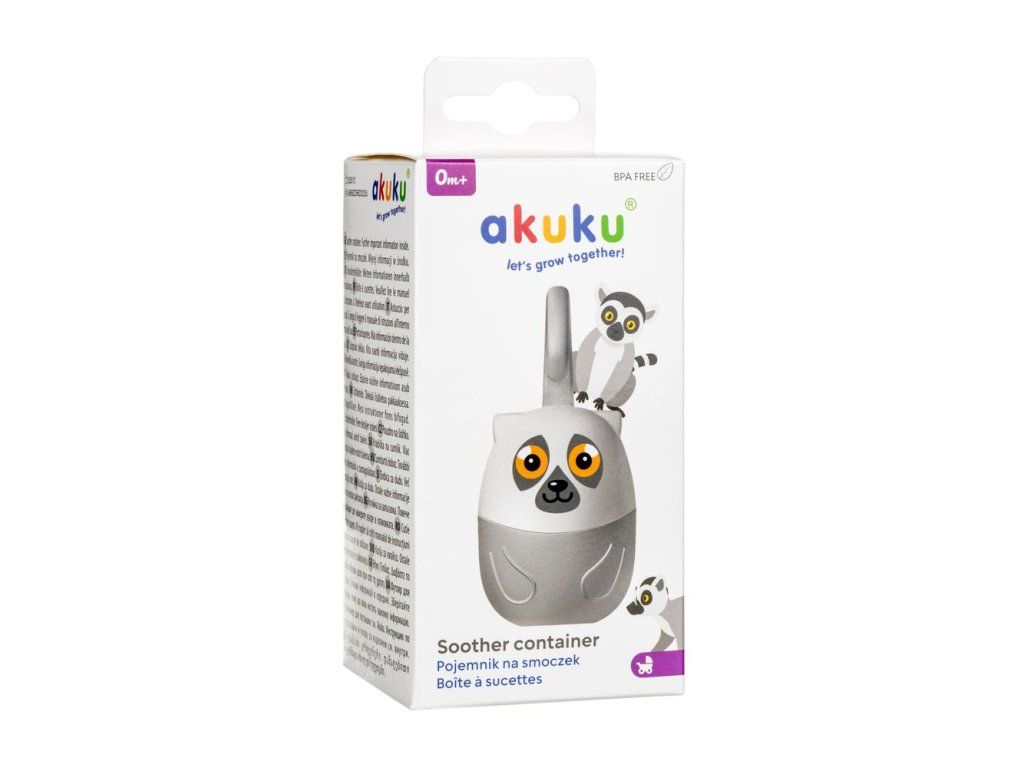 Praktické pouzdro na dudlík je velmi užitečné při cestování nebo procházce. Chrání dudlík před nečistotami a poškozením. Velmi snadné použití a jednoduché připevnění na kočárek, autosedačku, tašku nebo tyč do postýlky. Pojme dokonce 2 dudlíky. Neutrální a příjemné barvy se hodí ke každému kočárku a tašce. Tvar nádoby připomíná lemura.