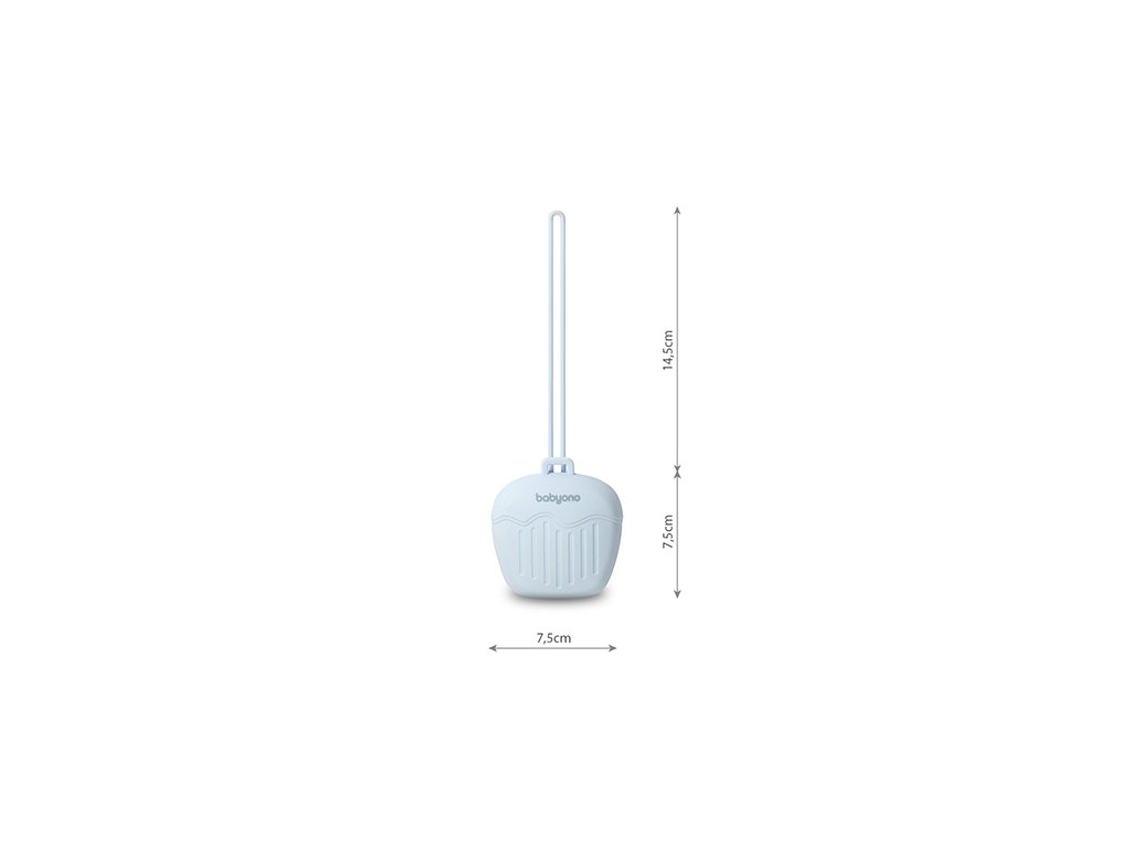 Pouzdro pojme dva dudlíky standardní velikosti. Pouzdro s dlouhou, flexibilní rukojetí se připevňuje k tašce, batohu, kočárku nebo postýlce. Dudlík můžete rychle vložit a vyjmout speciálním otvorem – i jednou rukou.