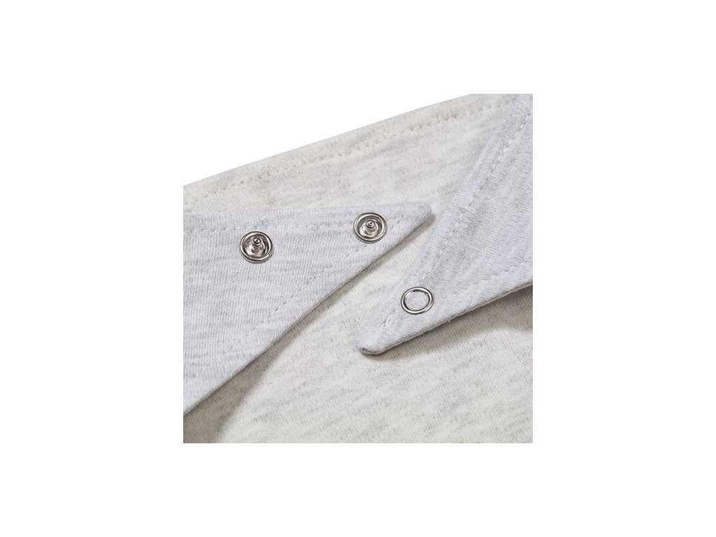 - Oboustranný - Šátkový bryndáček je oboustranný. Na přední straně jsou vícebarevné potisky, zatímco zadní strana je k dispozici v univerzální barvě šedé směsi. Pomocí patentních knoflíků bryndáček snadno převrátíte.