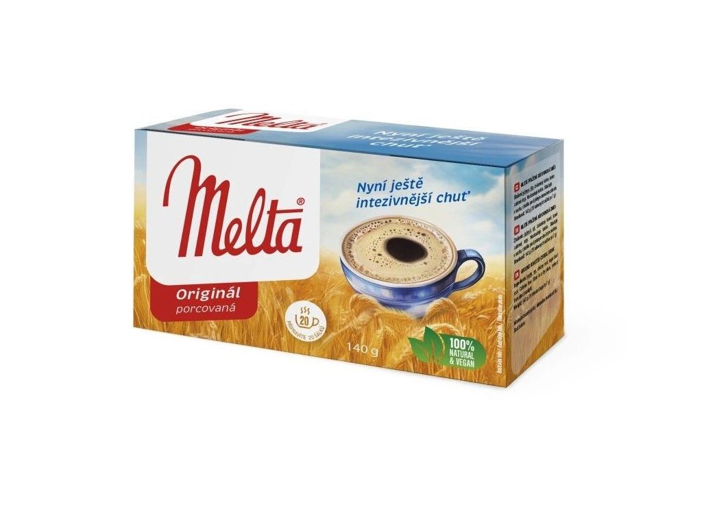 Tradiční zdravá kávovinová náhražka. Tato směs kořene čekanky obecné, cukrové řepy, žita a ječmene umožňuje připravit lahodný, zcela bezkofeinový nápoj, vyrobený z přírodních hodnotných surovin. Vzhledem k tomu, že neobsahuje kofein, je melta vhodná i pro maminky a děti.