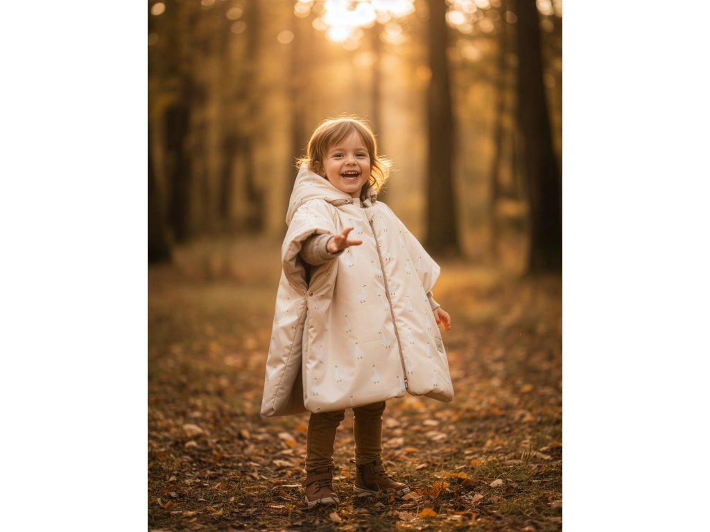 Toto pončo do auta je inovativním a praktickým řešením pro nejmladší cestující, které kombinuje pohodlí, bezpečnost a moderní design. Vnější vrstva ponča je vyrobena z nepromokavé látky, která účinně chrání před deštěm a větrem a zajišťuje tak pohodlí vašeho dítěte během každé cesty bez ohledu na povětrnostní podmínky. Uvnitř je pončo opatřeno silikonovou výplní, která poskytuje vynikající tepelnou izolaci, zatímco vnitřní bavlněná velurová podšívka jemně obepíná pokožku dítěte pro maximální pohodlí.