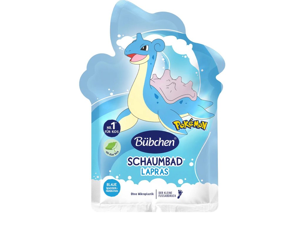 Připravte se na koupací dobrodružství s Laprasem. Tato tekutá koupelová přísada s mořskou vůní a přírodní aloe vera obarví vodu ve vaně do zářivě mořské modři a vytvoří nádherné hory pěny. Fantastická zábava při koupání pro více hraní a vzrušení ve vaně. Díky svým jemným složkám nabízí pěnová koupel Bübchen Lapras obzvláště jemný zážitek z koupele.