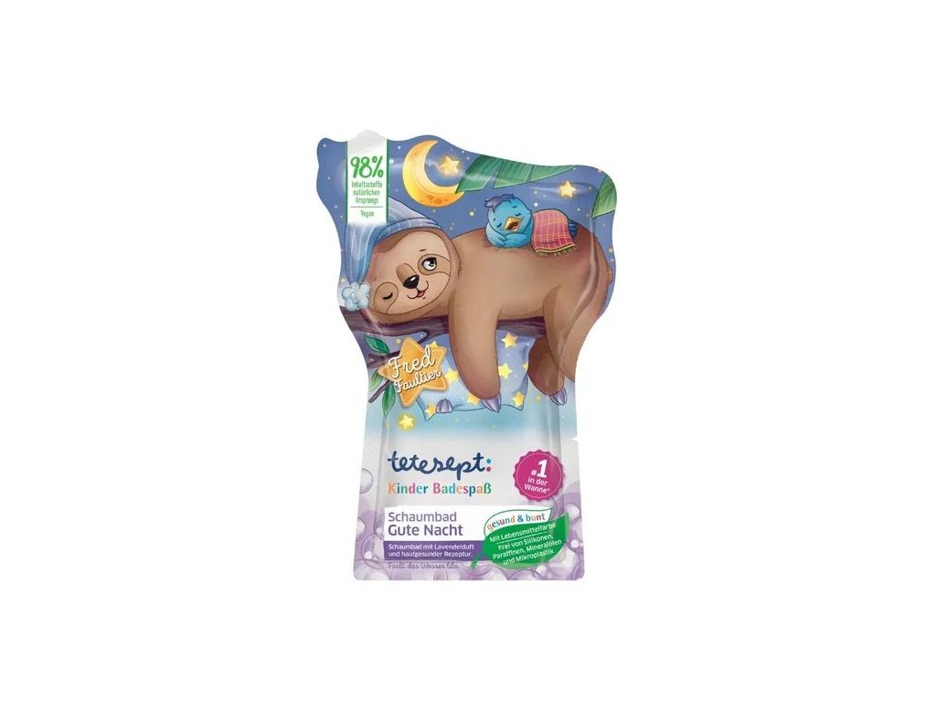 Ponořte se do kouzelného světa her s koupelovou pěnou Tetesept Dobrou noc, která vašim dětem přináší purpurovou vodu a uklidňující levandulovou vůni. Děti si tento večerní rituál zamilují! Pěna obsahuje extra jemné složení s aloe vera a esenciálním levandulovým olejem, které je přizpůsobeno citlivé dětské pokožce. Díky potravinářskému barvivu nezanechává stopy na pokožce, vlasech ani ve vaší vaně, a zbytky koupele lze jednoduše smýt horkou vodou. Užijte si relaxaci, péči i zábavu s Tetesept Dobrou noc pěnou do koupele!