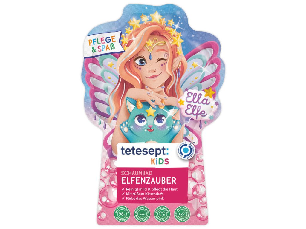 Tetesept bublinková koupel nabízí možnost malé pohádky do vany. Elfka Ella a její kouzelné zvířátko Zia prožívají mnoho kouzelných dobrodružství. Dnes jsou v začarovaném lese a objevují žabičku Frolumba, kterou drží uhrančivý břečťan. „Lumia“ říká Ella a vrhá světelnou kouli. Břečťan se okamžitě stáhne a vypustí Frolumba. Všichni tři šťastní z jeho záchrany opouštějí les a zbytek dne stráví u kouzelného jezera. Budete Ellu doprovázet na jejím dalším dobrodružství?