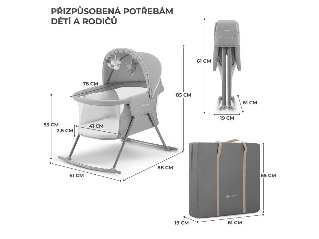 Kinderkraft Dětská cestovní postýlka 3v1 Lovi - šedá
