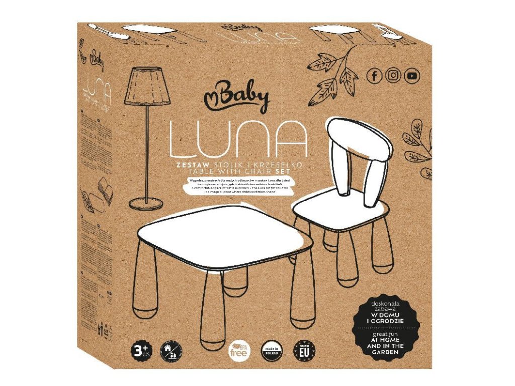 Sada Luna je funkční dětská sada: ergonomická židlička a praktický stolek navržené s ohledem na pohodlí a bezpečnost batolete. Ideální pro hraní, kreslení a učení se samostatnému jídlu.