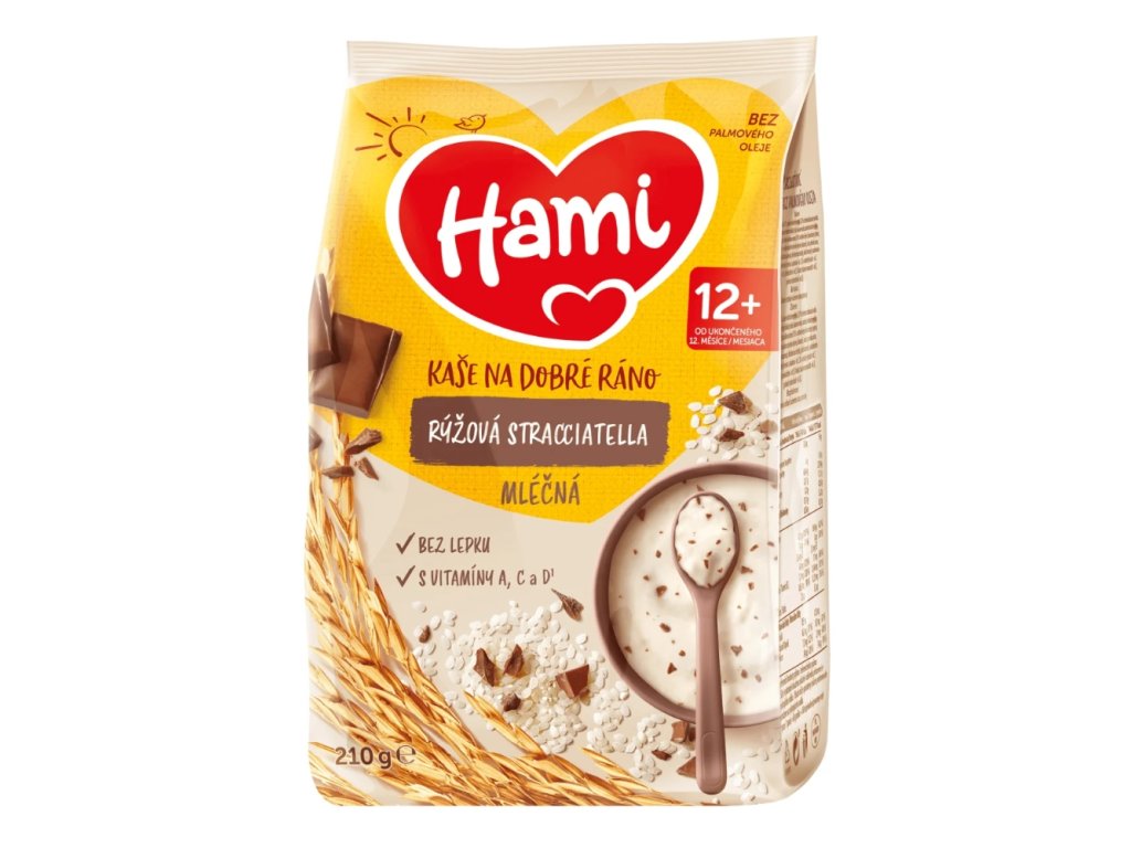 Hami kaše Na dobré ráno je vyrobena z pečlivě kontrolovaných obilovin, které jsou přirozeným zdrojem energie. Také obsahuje potřebné vitamíny a minerální látky. Mimo jiné obsahuje vitamín D a vápník dle požadavků legislativy potřebné pro normální růst a vývin kostí u dětí. Mléčná kaše se skládá i z pečlivě vybraného mléka. Mimo jiné je bez lepku, konzervantů, barviv a palmového oleje. Navíc kaše od značky Hami skvěle chutná a dobře se rozpouští!