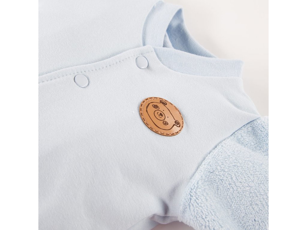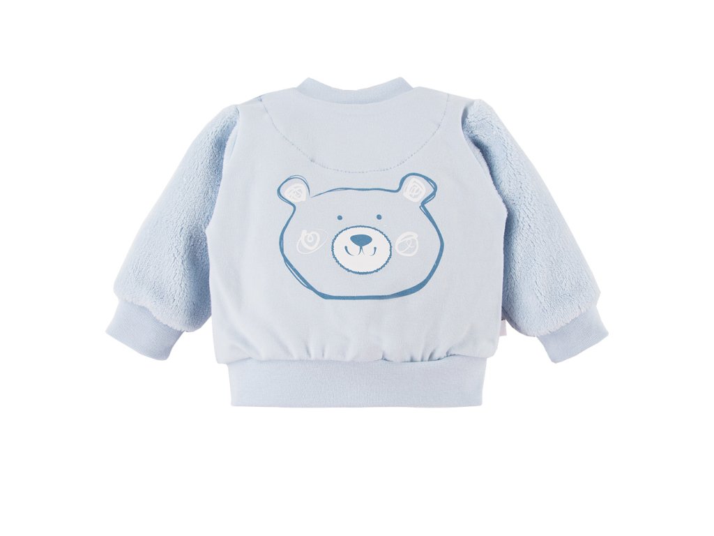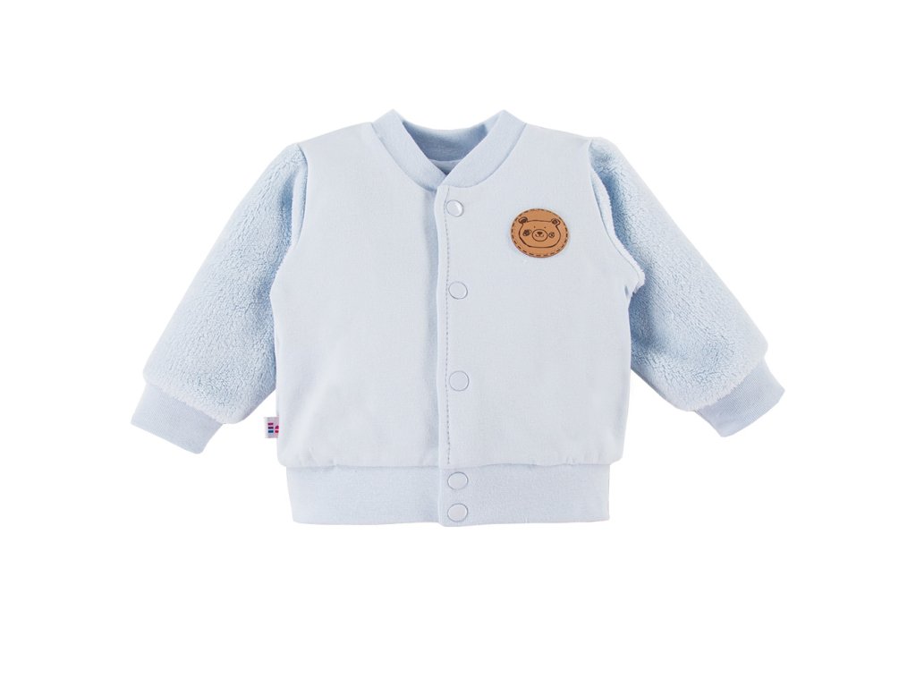 Dětská rozepínací mikina z kolekce BIG BEAR. Tato mikina je perfektní volbou na procházky a hraní na hřišti. Doplňkovou ozdobou je nášivka z ekokůže našitá na hrudi. Na zadní straně mikiny je potisk velkého medvídka.