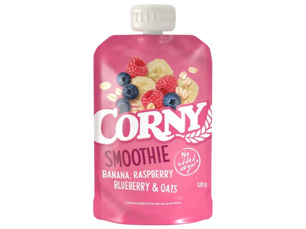 Ochutnej CORNY Smoothie s banány, malinami, borůvkami a ovesnými vločkami. Přijde ti vhod, když pocítíš malý hlad mezi hlavními jídly nebo si budeš chtít dopřát skvělou snídani.