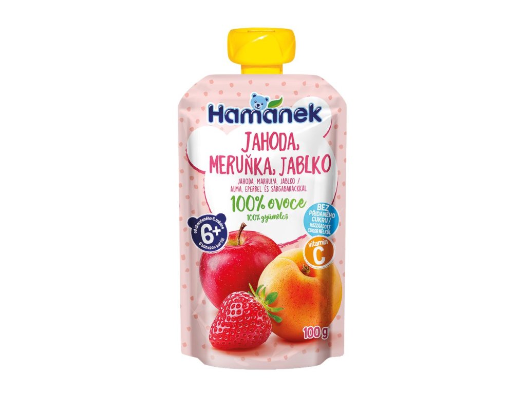 100 % ovocná svačinka bez přidaného cukru a s vitamínem C pro nejmenší. Kapsičky Hamánek jsou vždy po ruce i v dalších pestrých chuťových variantách.