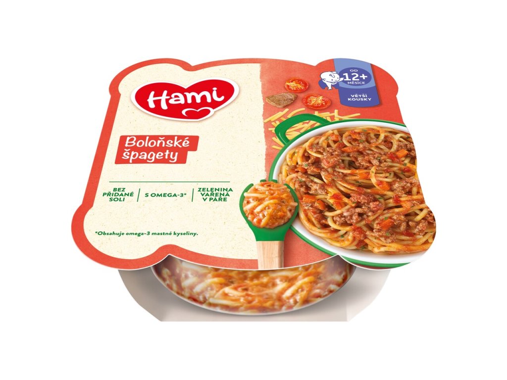 Hami talířek boloňské špagety je potravina pro zvláštní výživu určená pro malé děti od ukončeného 12. měsíce věku.