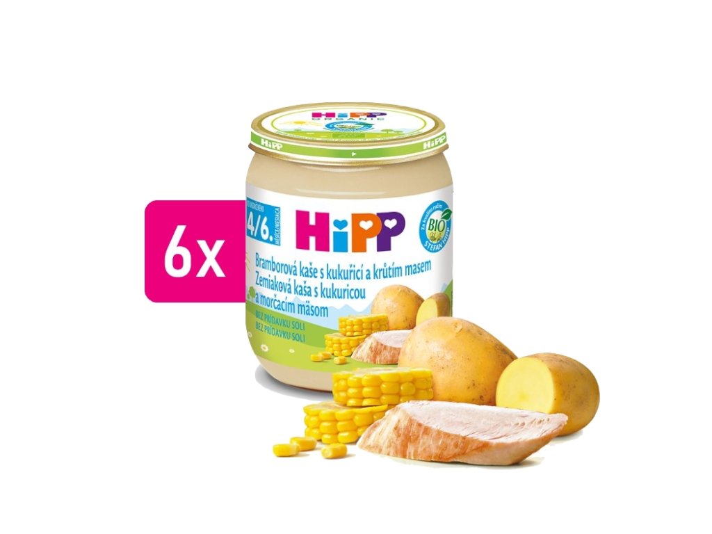 HiPP BIO Bramborové pyré s kukuřicí a krůtím masem 6x125g