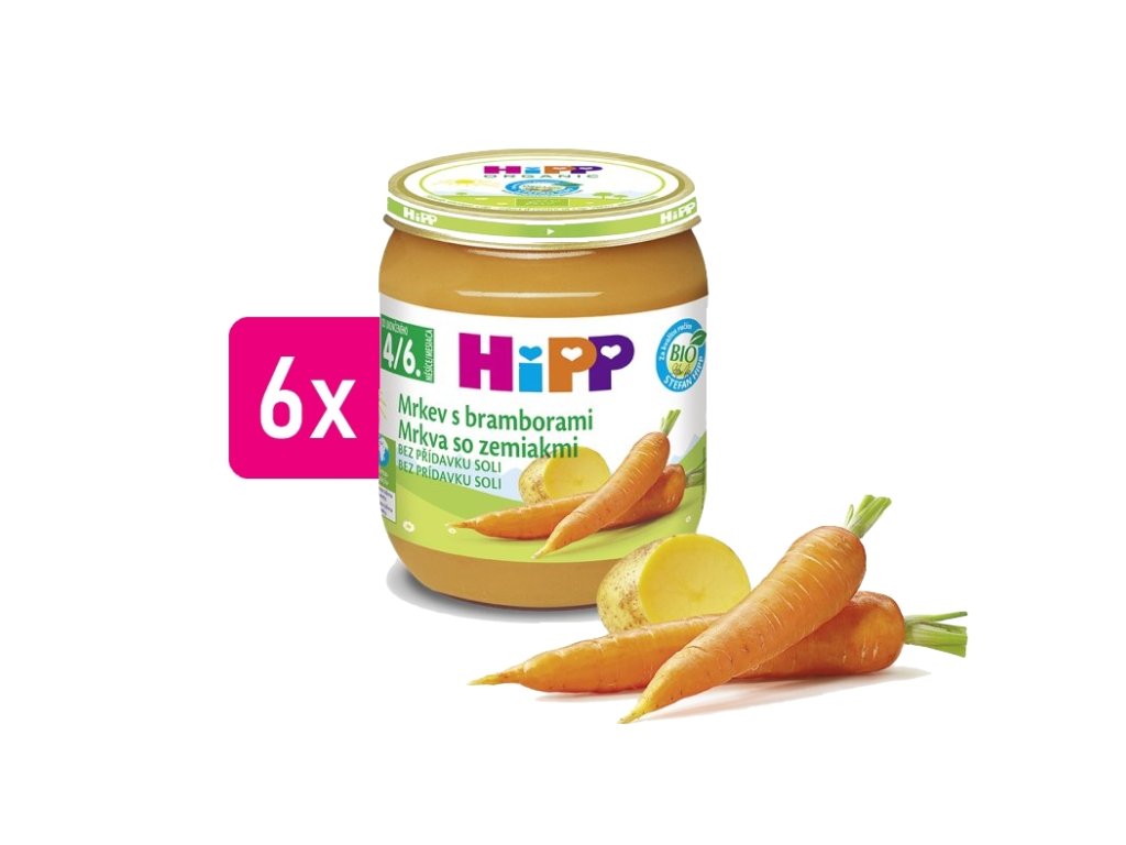 Složení: mrkev* 78 %, voda, brambory* 10 %, řepkový olej* 1,3 %.
