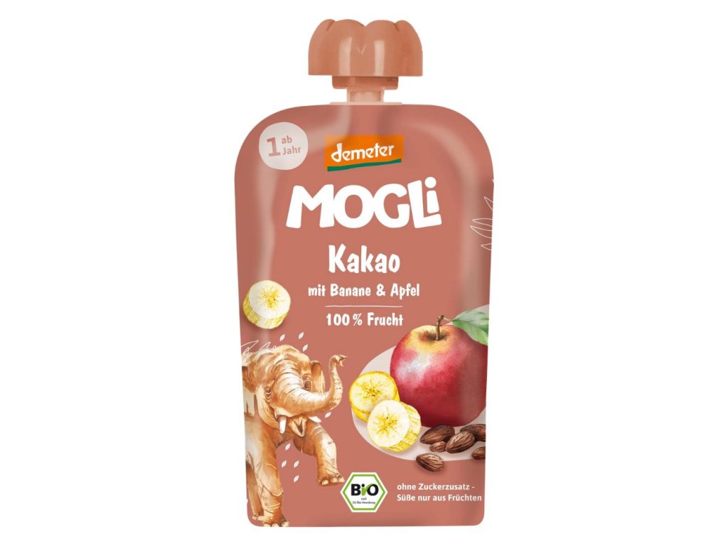 Kapsička MOGLi BIO obsahuje pouze tři jednoduché ingredience – kakao, banány a jablka. Je ideální jako svačinka na výlet, procházku nebo k mlsání doma. Navíc neobsahuje cukr. Díky praktickému balení ji můžete vzít kamkoli s sebou a užít si její skvělou chuť kdykoli během dne. Pokud milujete chuť kakaa, ale chcete se vyhnout přidanému cukru a aromatům, rozhodně byste si měli vzít s sebou na příští cestu tuto naši kapsičku.