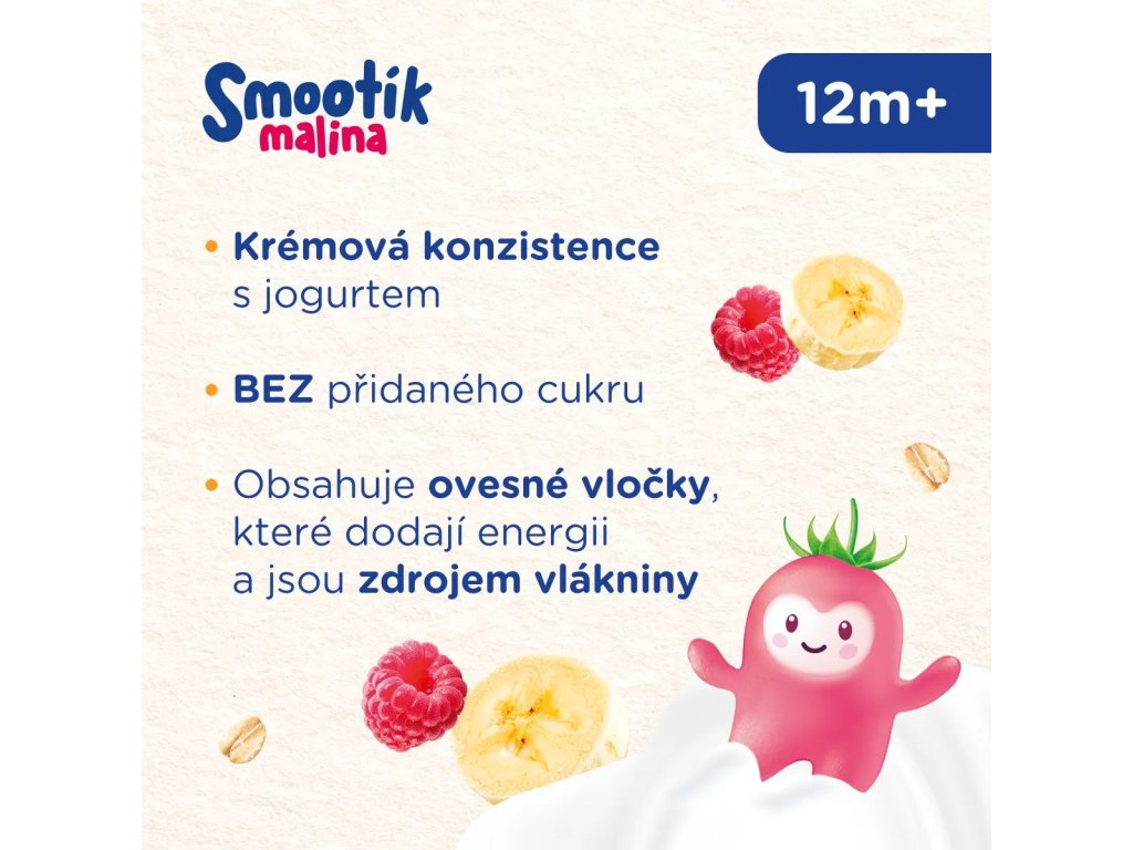 Sunar Smootík dětská kapsička malina, jogurt, ovesné vločky 12m+, 120g