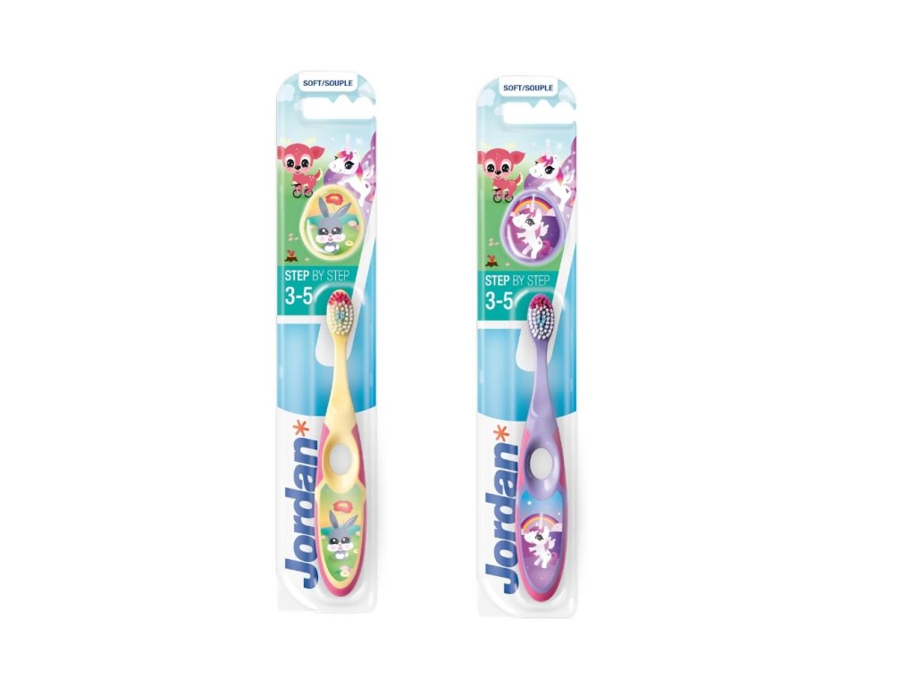 Jordan dětský zubní kartáček 3-5 let Soft pro předškolní děti navazuje na kartáček s kousátkem pro děti do dvou let. Kartáček byl navržen speciálně pro čištění mléčných zubů. Kulatá hlava a měkké štětinky usnadňují čištění okolí zubů. Barevné štětinky udávají doporučené množství zubní pasty. Štětinky s dvojitou hustotou čistí efektivněji. Prodloužená rukojeť je koncipovaná pro pohodlné společné čištění rodičů s dětmi, ale i pohodlné držení pro děti a jejich samostatné čištění bez možnosti vsunutí zubního kartáčku nepříjemně daleko do krku. Malá oblá hlavička s měkkými vlákny umožňuje snadnou manipulaci v dětských ústech. S kartáčkem s barevným designem od značky Jordan uděláte z čištění zubů neobvyklé dobrodružství.
