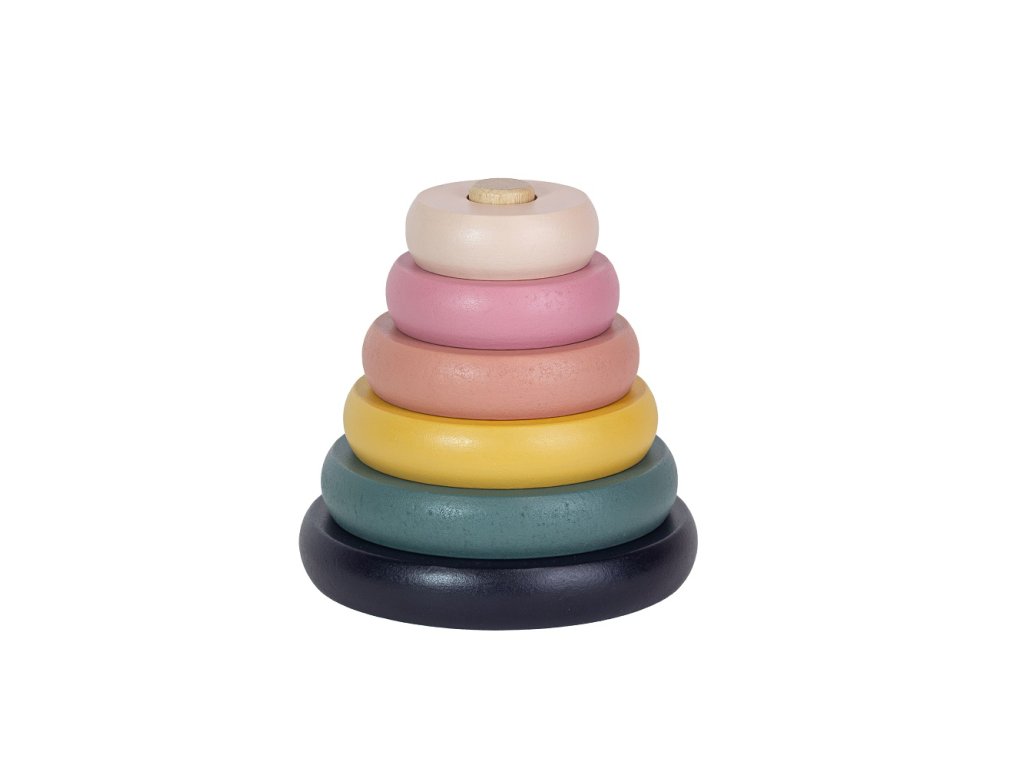 Dřevěná skládací hračka ORBIT ve tvaru pyramidy je kombinací barevných disků různých velikostí. Každý disk byl pečlivě opracován a nemá ostré hrany, což zaručuje bezpečnou hru pro malé děti.