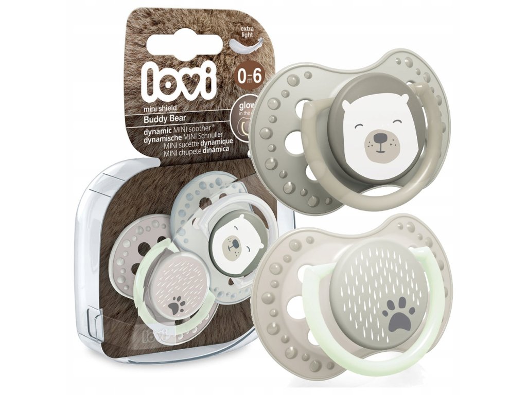 LOVI Dudlík silikonový dynamický BUDDY BEAR 0-6m (2ks)