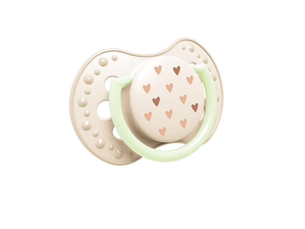 Dudlík má úchytku svítící ve tmě, což usnadňuje jeho hledání v noci.