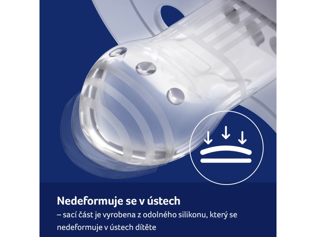 - NEDEFORMUJE SE V ÚSTECH - Špička je vyrobena z odolného silikonu, který se během používání nedeformuje v ústech dítěte.