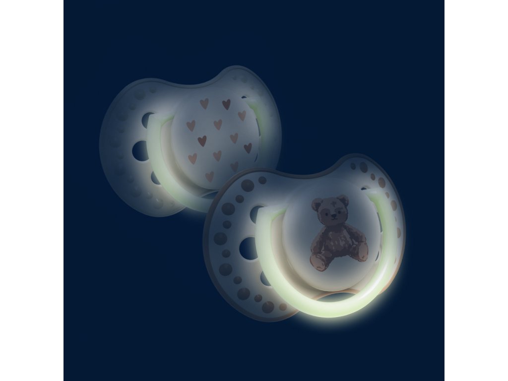 Dudlík má úchytku svítící ve tmě, což usnadňuje jeho hledání v noci.