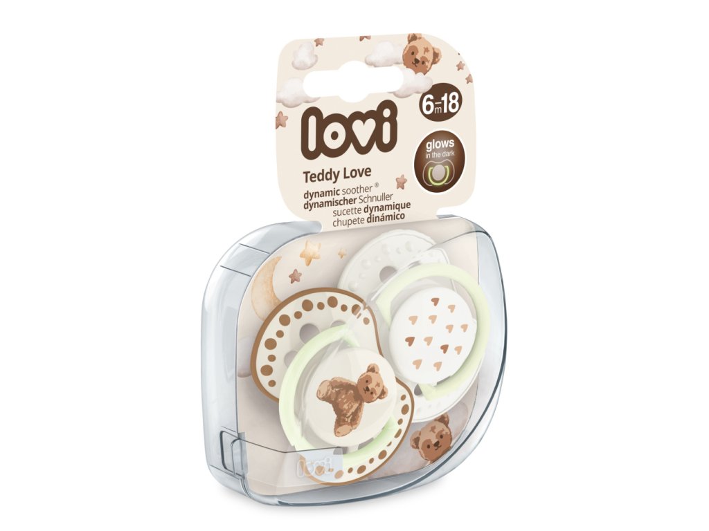 Dynamický dudlík LOVI z kolekce TEDDY LOVE je bezpečný pro sací reflex a nenarušuje vývoj řeči a skusu*.