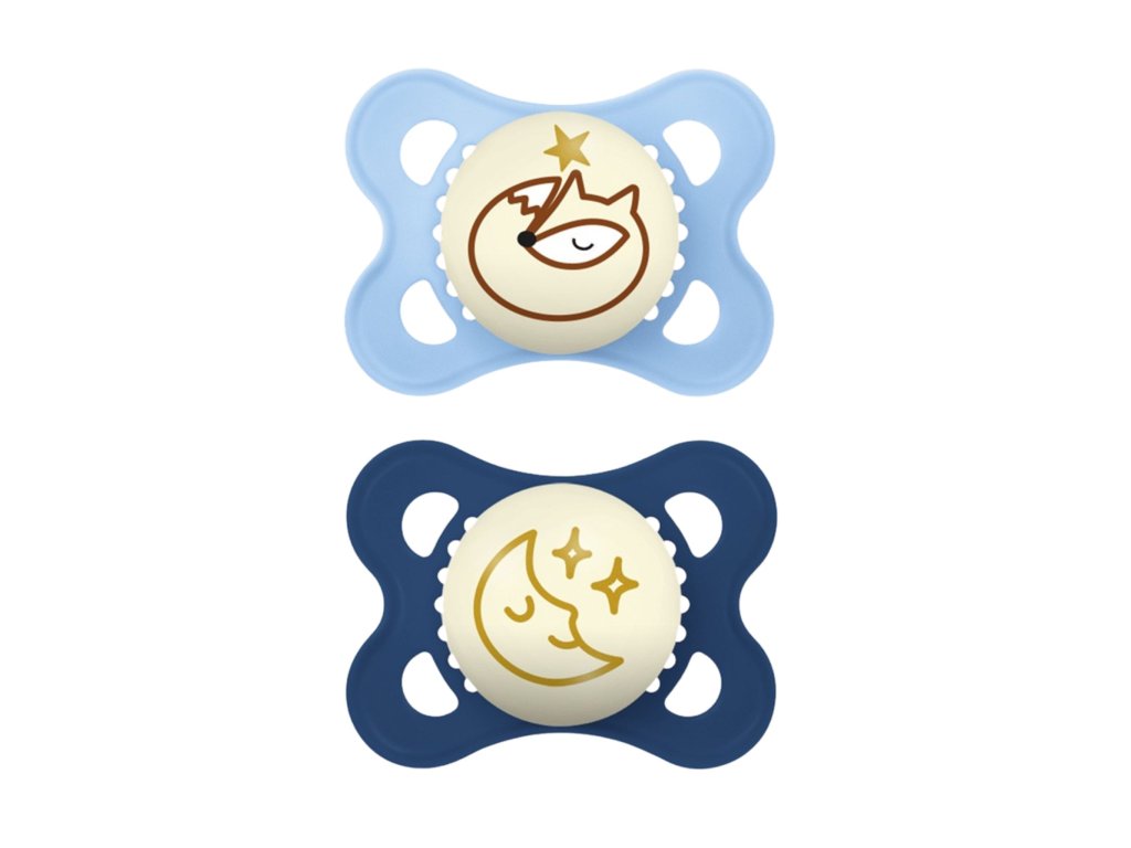 Dudlíky MAM Original Night jsou speciálně vyvinuty pro noční použití – knoflík dudlíku ve tmě svítí, takže ho rodiče i děti mohou snadno nalézt i v noci.