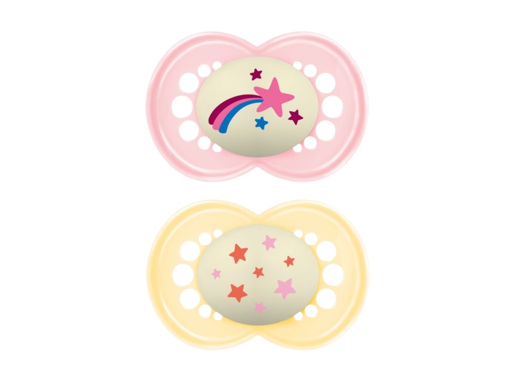 Dudlíky MAM Original Night jsou speciálně vyvinuty pro noční použití – knoflík dudlíku ve tmě svítí, takže ho rodiče i děti mohou snadno nalézt i v noci.