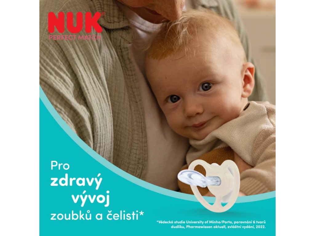 - Pro zdravý vývoj zoubků a čelisti. V porovnávacím testu čtyř různých tvarů dudlíků získal NUK nejlepší hodnocení díky nejmenšímu vlivu na přirozený a zdravý vývoj ústní dutiny.*