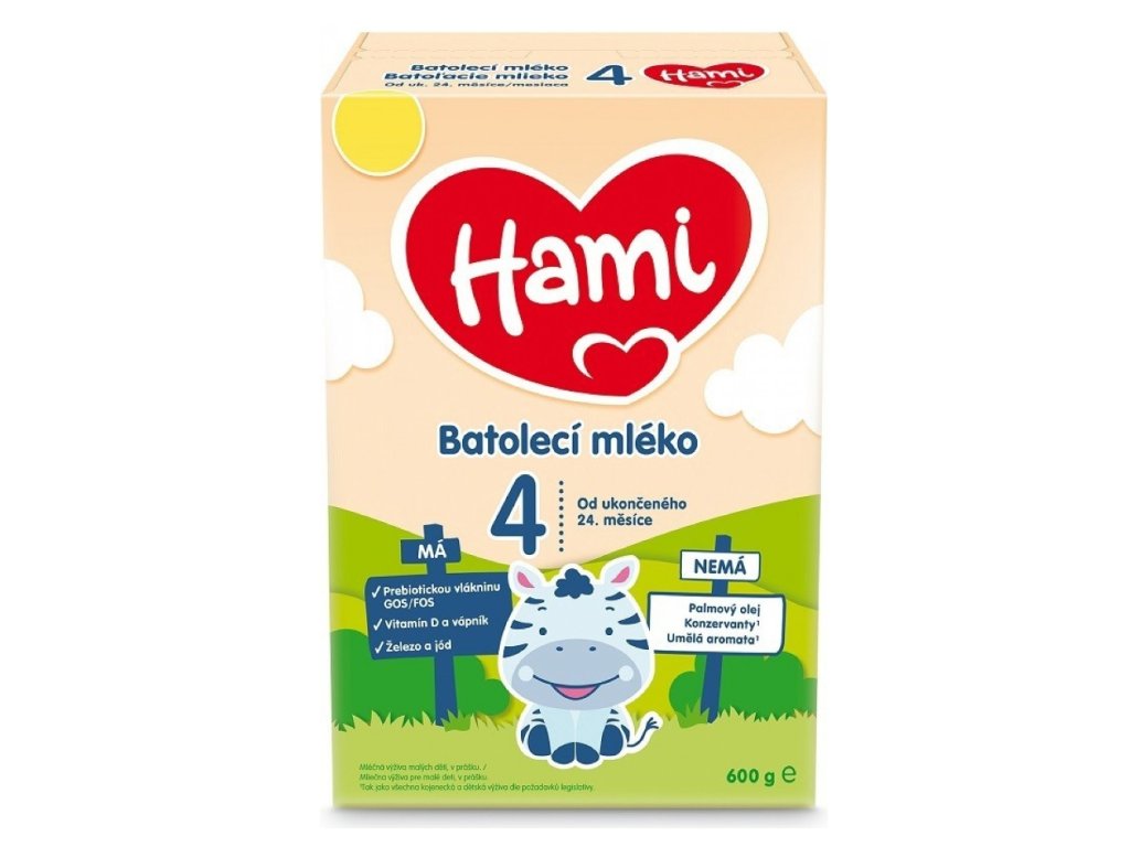 - Batolecí mlíčko Hami 4 má unikátní složení OptiNutri s prebiotiky GOS/FOS. Díky tomuto složení Vaše děťátko získá v rámci smíšené a vyvážené stravy důležité vitamíny a minerály pro podporu jeho normálního a přirozeného růstu a vývoje1.