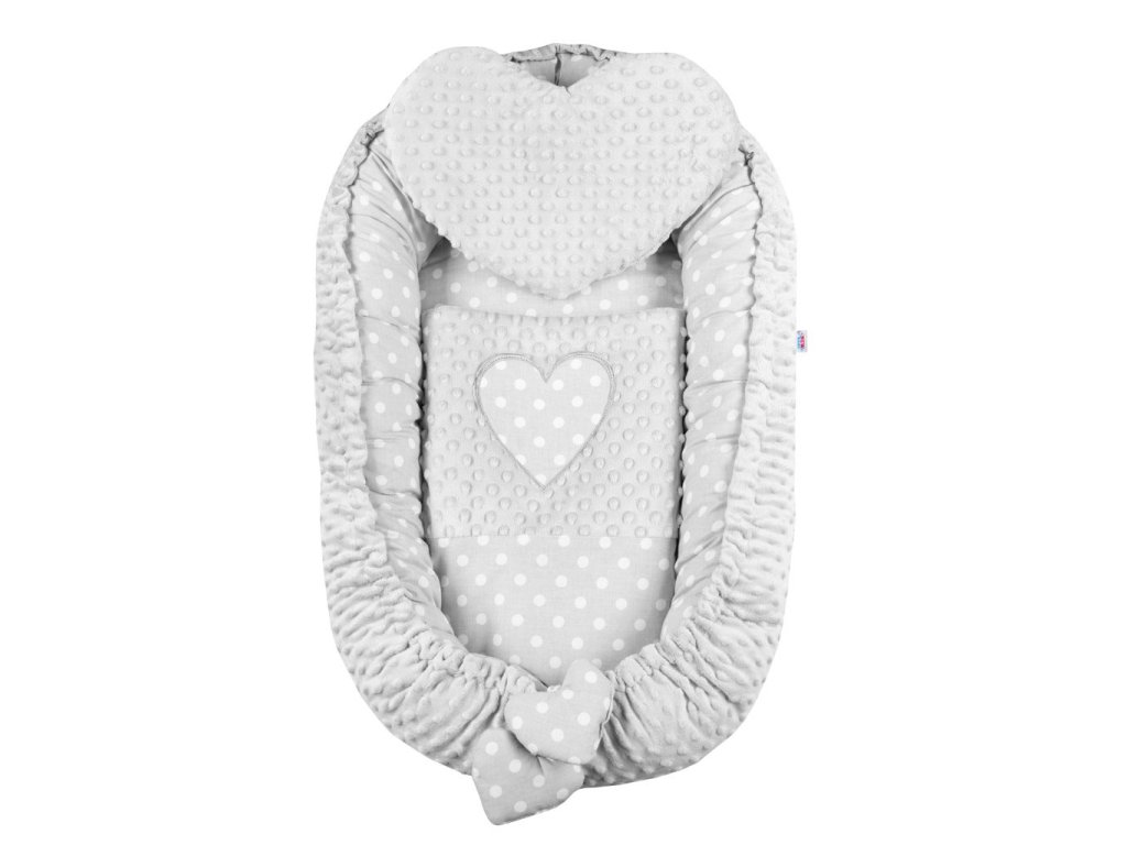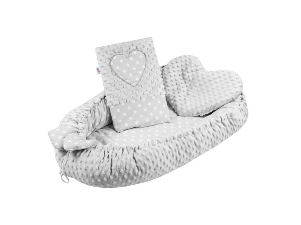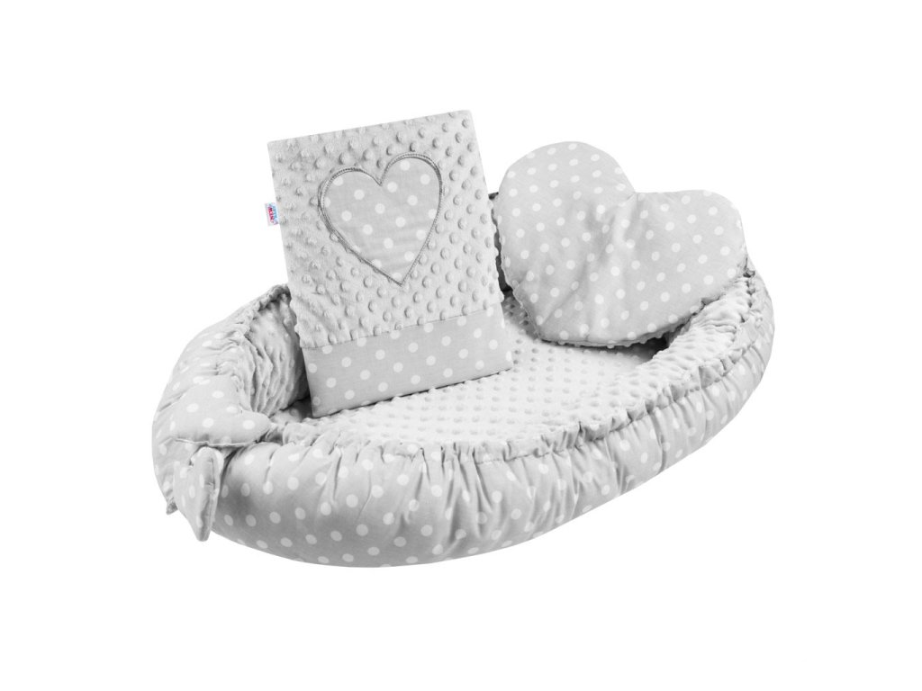 New Baby Luxusní hnízdečko s polštářkem a peřinkou z Minky - šedé