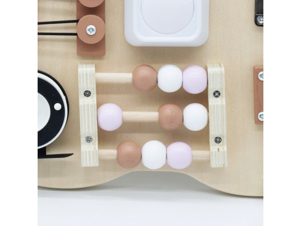 Manipulační tabule je ideální pro domácí hraní, cestování i chvíle klidu. Pomáhá dětem učit se samostatnosti, například zapínání, odemykání nebo koordinaci pohybů.