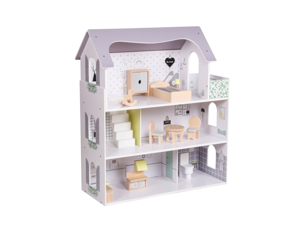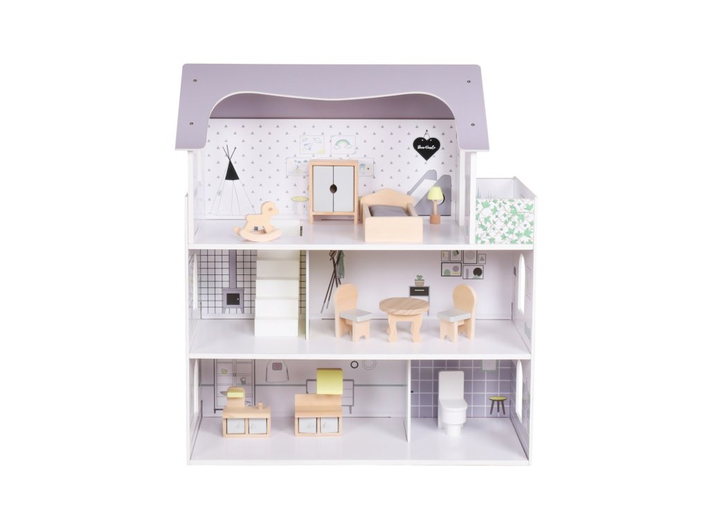 Součástí je 10 ks nábytku, které podporují kreativní hraní a flexibilní uspořádání. Realistické detaily a otevřená konstrukce umožňují snadný přístup do všech místností. Kvalitní materiály – masivní dřevo + MDF zaručují dlouhou životnost, stabilitu a bezpečnost. Montessori design podporuje samostatnost, jemnou motoriku a rozvoj sociálních dovedností. Ideální pro hraní s panenkami i figurkami různých velikostí.