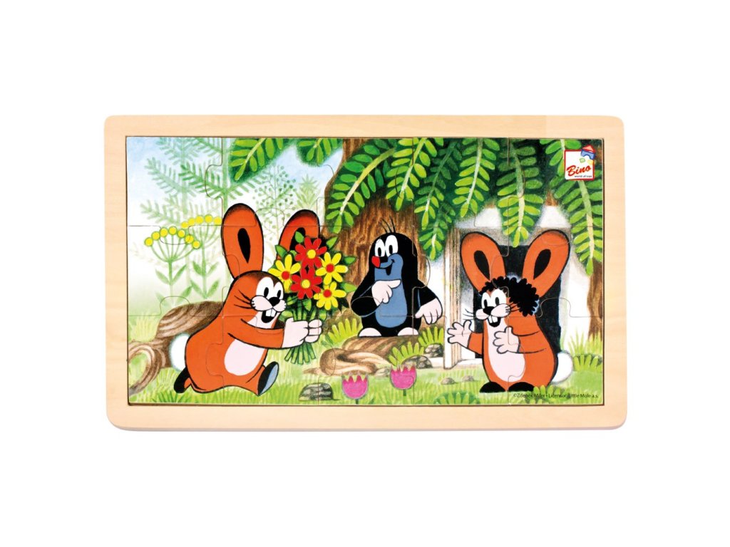 Dřevěná skládanka s krtečkem, která obsahuje 15 dílků. Rozměr 30x18x0,8 cm