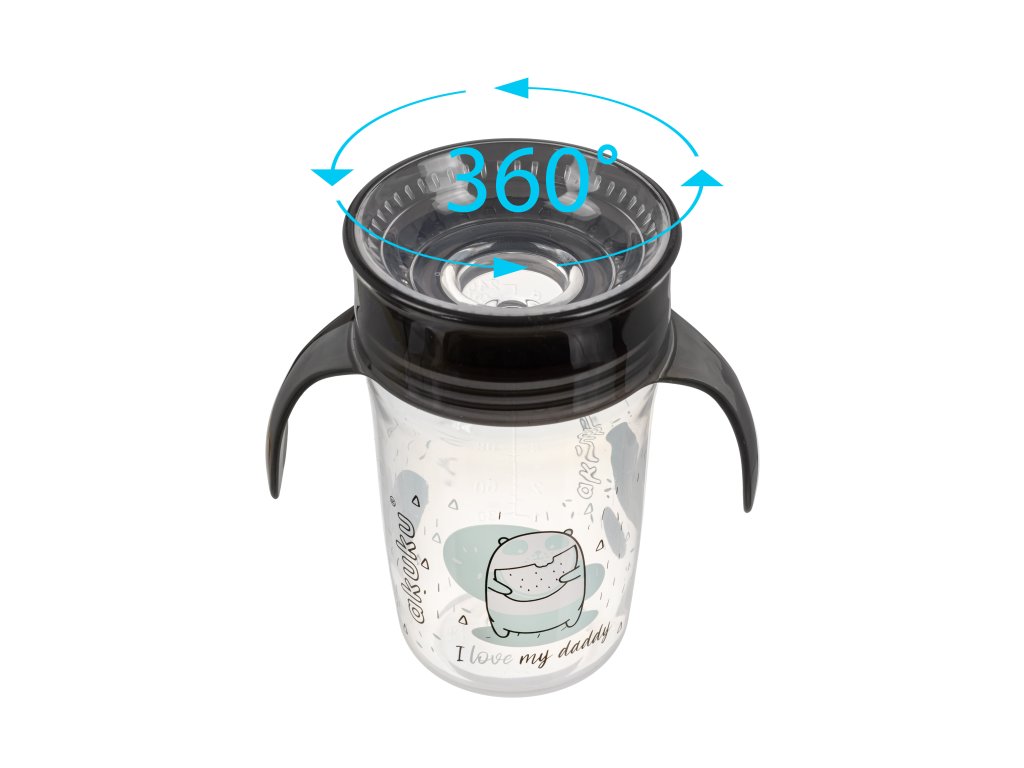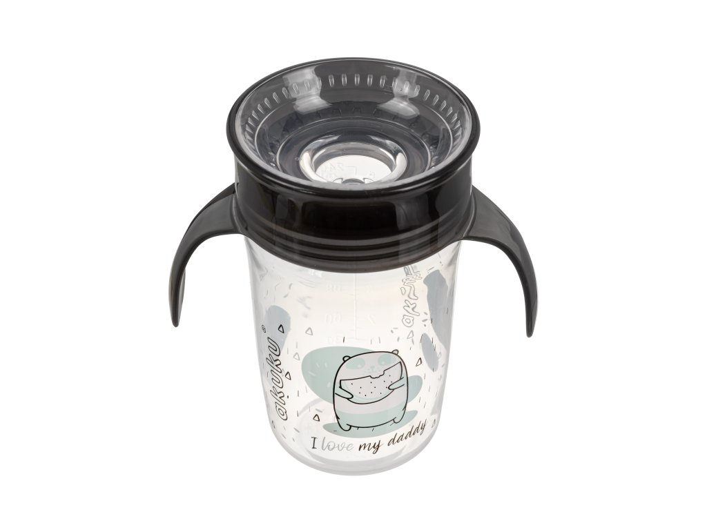Akuku Dětský nevylévací hrneček 360° 240ml - černý