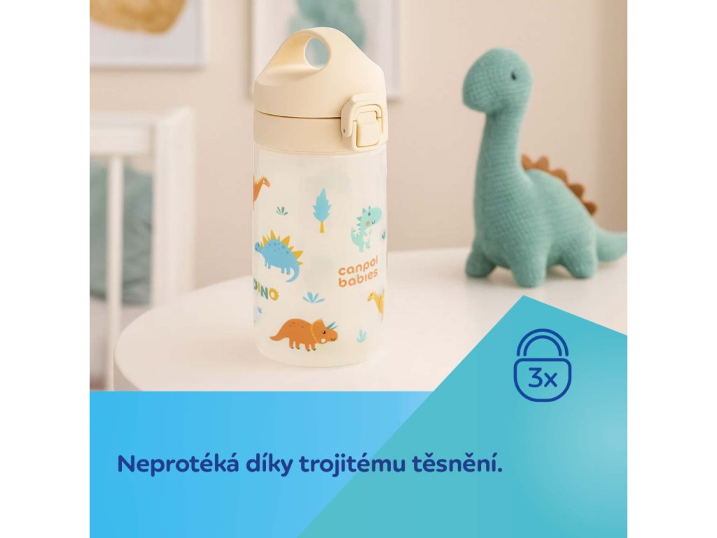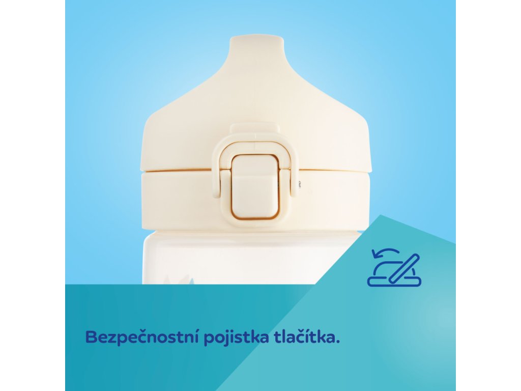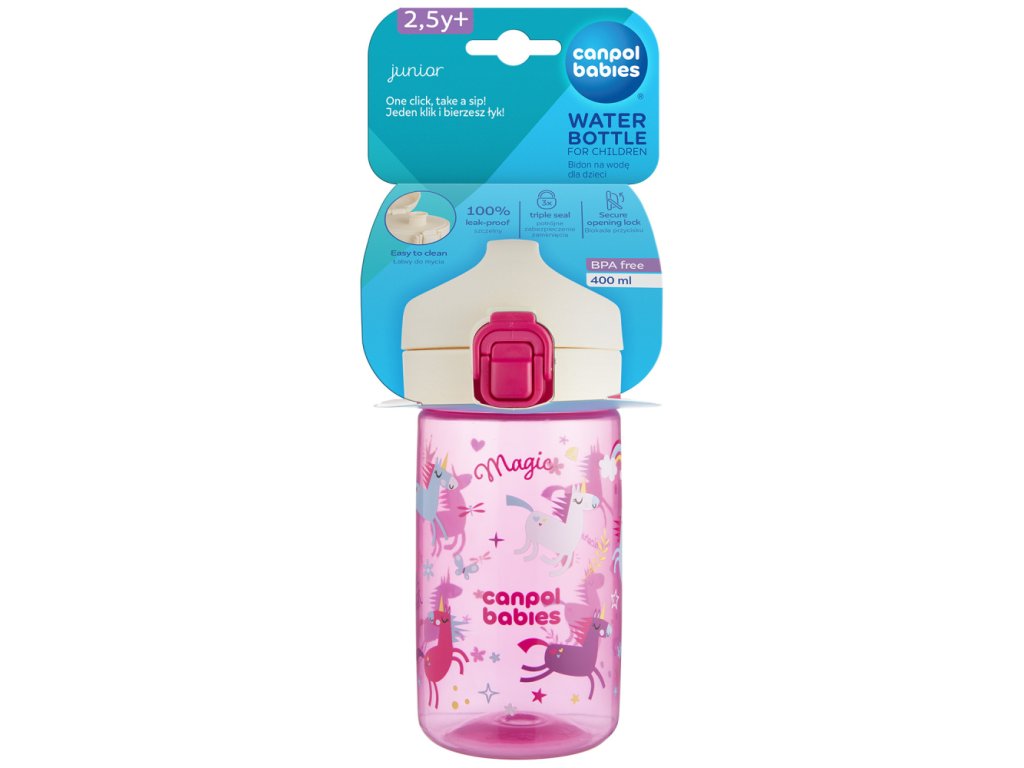 Jednoduché ovládání jednou rukou – jedno kliknutí a pití je připraveno! Náustek je navržen tak, aby se snadno čistil i skladoval – bez brček a závaží. Láhev je vhodná do myčky nádobí (doporučujeme ekologické tablety do myčky Canpol babies – k.č. 1/502, bez barviv a parfemace).