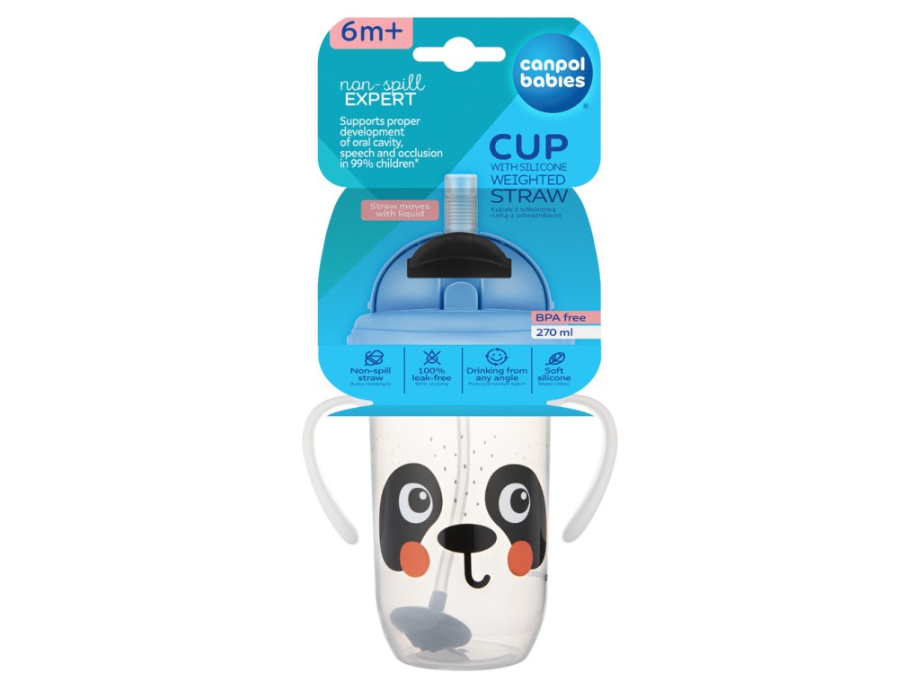 Canpol babies Nevylévací hrneček se slámkou a závažím BabiesBoo 270ml - Panda