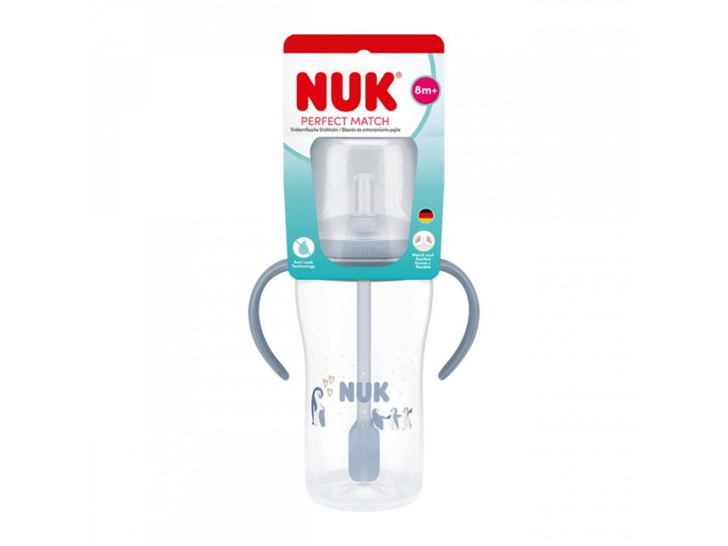 NUK Perfect Match lahvička na učení s brčkem PENGUIN 260ml