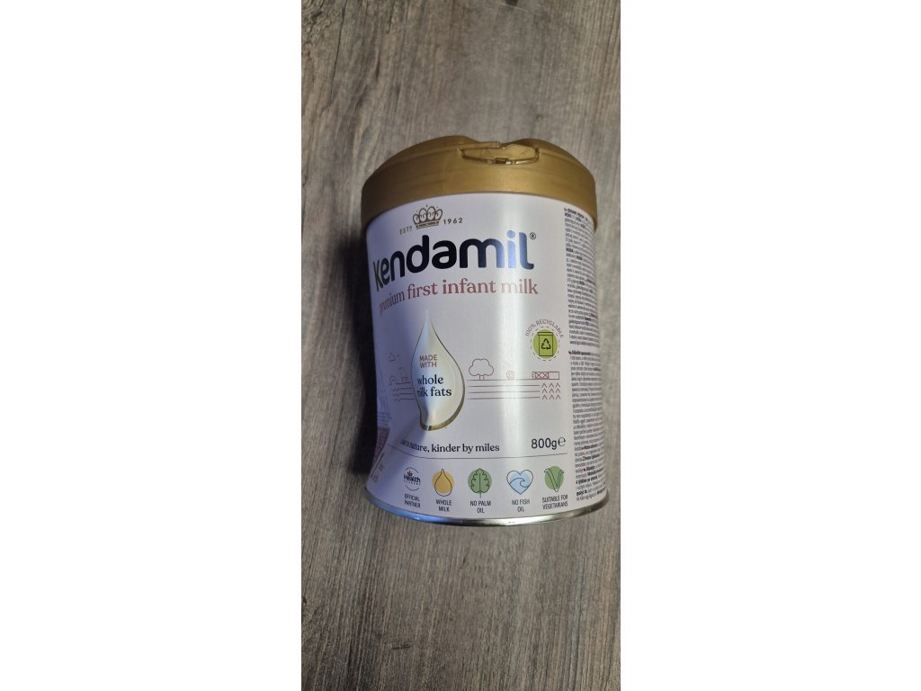 Nová vylepšená receptura tohoto mléka vznikla na základě 60letého výzkumu a vývoje. Kojenecké mléko Kendamil je inspirováno tím nejlepším z přírody. Jeho základ tvoří především plnotučné kravské mléko. Určeno pro miminka od narození do ukončeného 6. měsíce, pokud nemohou být kojena. Obal je plně recyklovatelný.