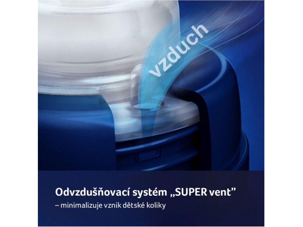 - Odvzdušňovací systém „SUPER vent” zabraňuje vzniku podtlaku, minimalizuje vznik dětské koliky.