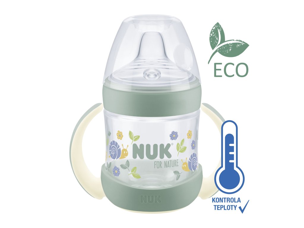 NUK for Nature lahvička na učení s kontrolou teploty 150ml - zelená