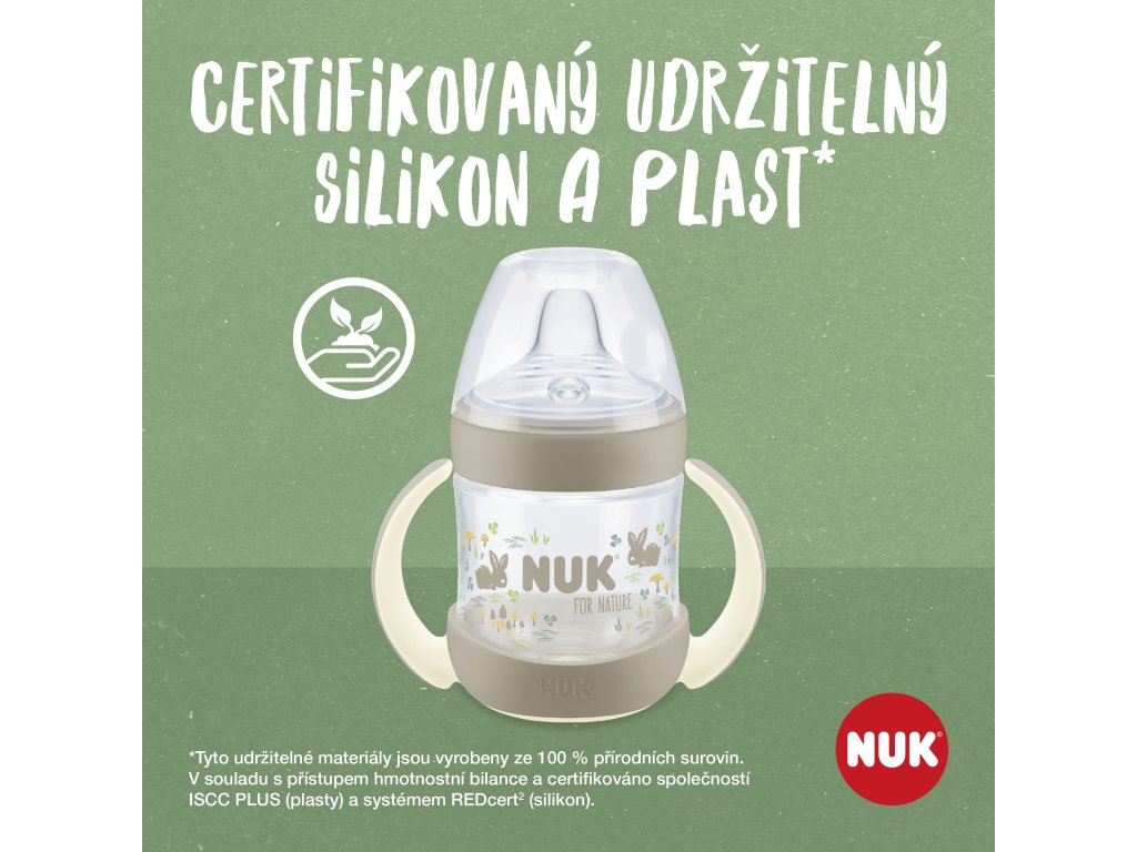 - Netekoucí, neobsahuje BPA, objem 150 ml, s patentovaným indikátorem teploty NUK, baleno výhradně v papíru s certifikací FSC