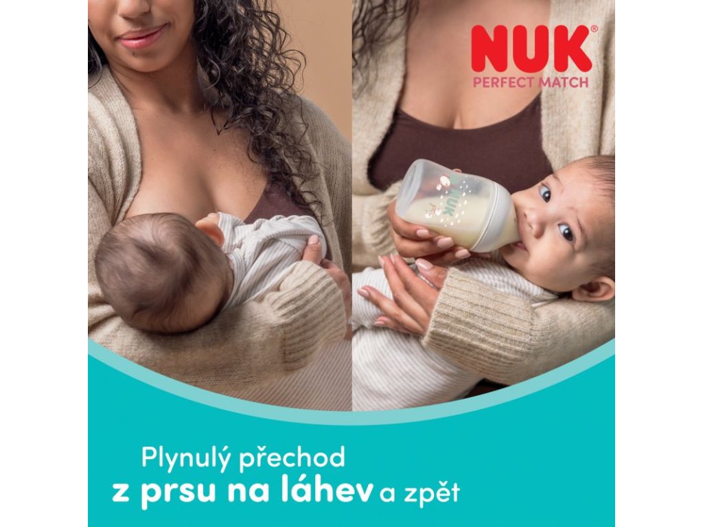 Láhev NUK Perfect Match je bezpečnou volbou při výběru základní výbavy pro péči o novorozence. Tato inovativní lahvička byla navržena tak, aby co nejvěrněji napodobovala pocit při kojení, a pomáhala tak usnadnit jemný přechod mezi kojením a krmením z lahve – pro miminko i rodiče.