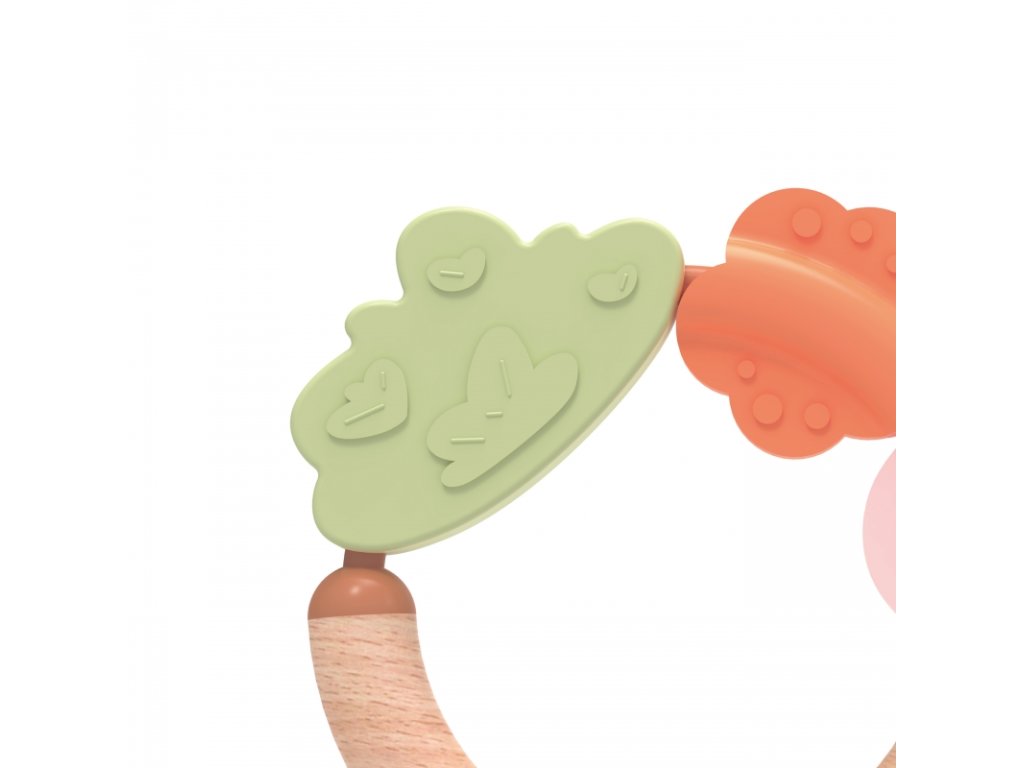 - Kombinace chrastítka a kousátka - stimuluje smysly a přináší úlevu při prořezávání zoubků
